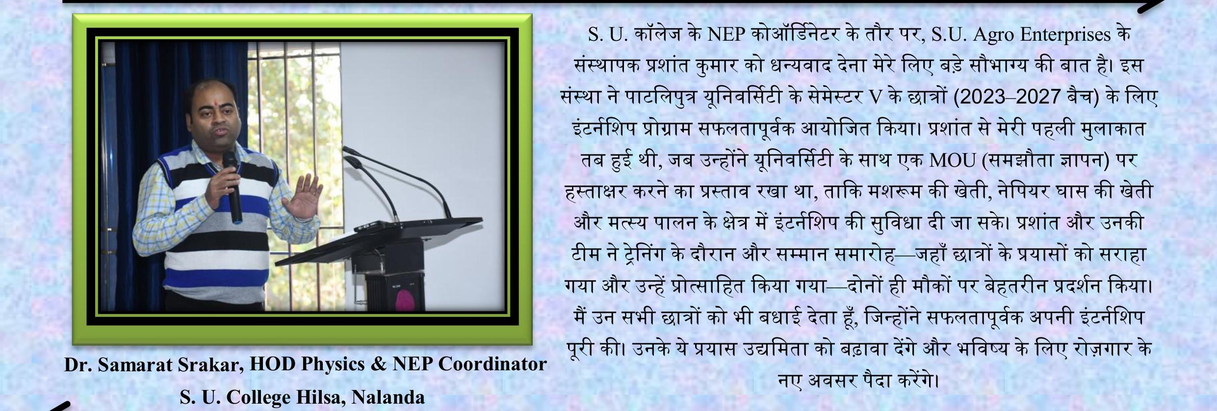 Welcome to S.U. Agro Enterprises. Our mission is to empower farmers, students, and professionals through modern agricultural practices, training programs, and real-world experience.